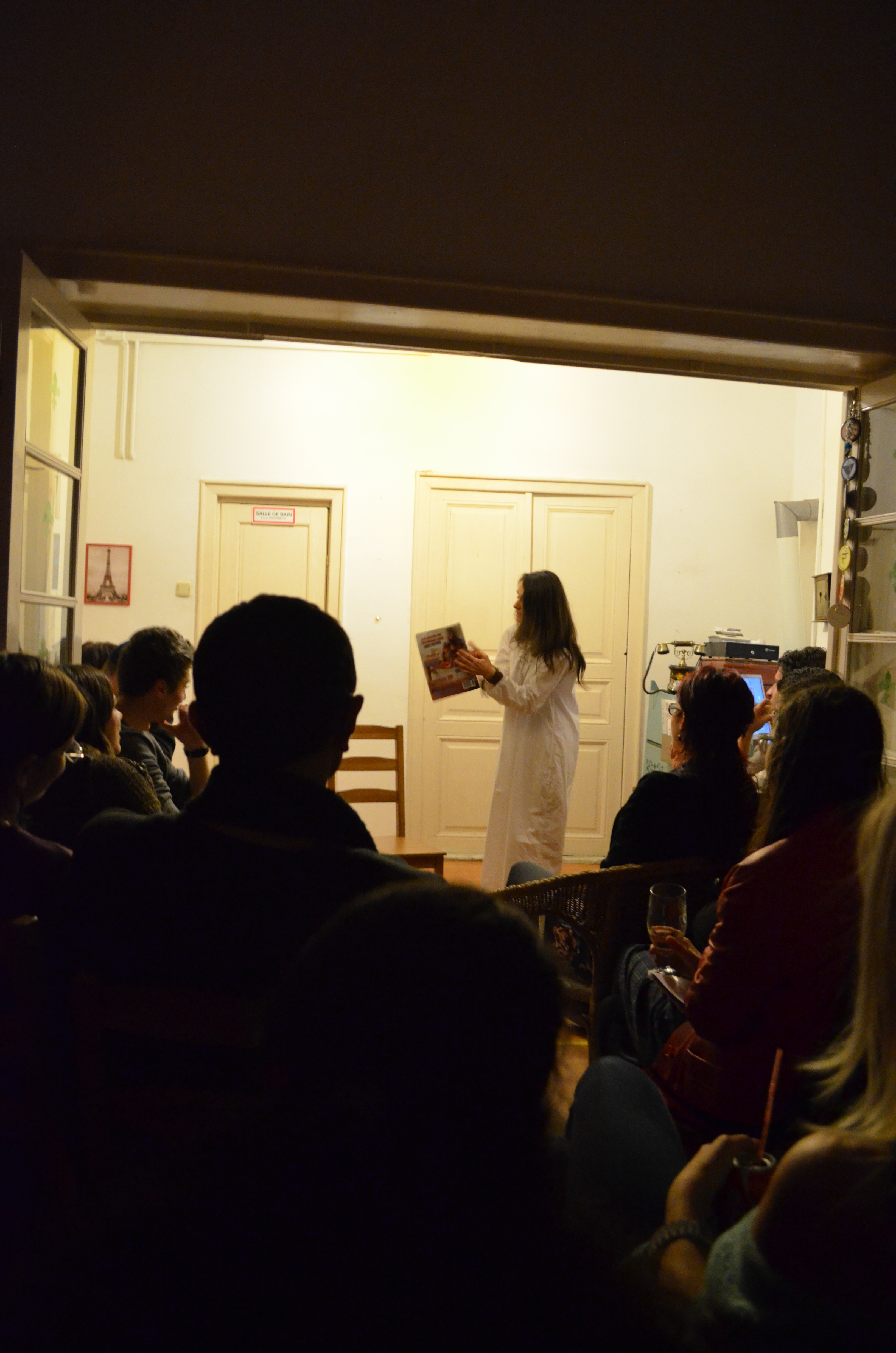 It premiered (as a preview) on November 24, 2012 and was played in Bucharest in 2012 and 2013 at Ch’artist Studio Store, The Artist Sudio and În Pod la Historia.